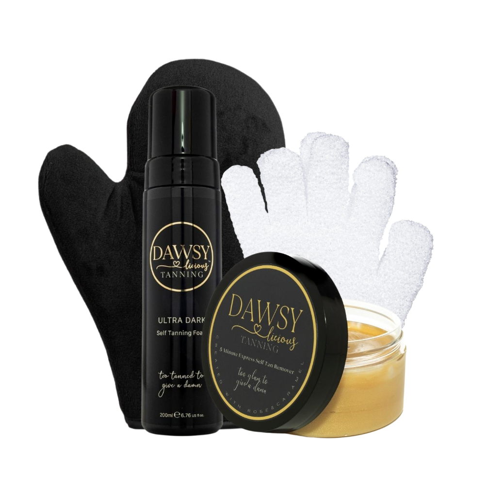 All the products you need for the ultimate tanning experience with our bestselling Dawsylicious products. Get your glow on using our bespoke luxury tanning foam created with a bronze colour guide, made to suit all skin tones. Apply with our luxury tanning mitt to buff your self tan in seamlessly. Once you’re ready to refresh, use our Dawsylicious self-tan remover to effectively remove your self tan all in one go in just 3 minutes!